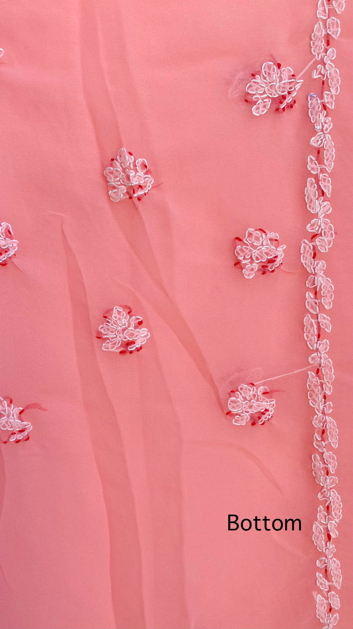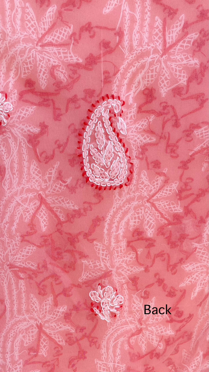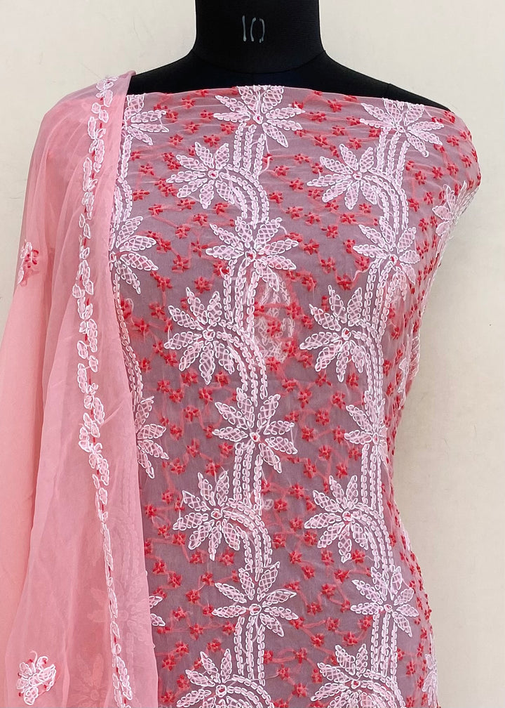 Lucknowi Chikankari Suit Length 3 Piece Pink Georgette With Embroidered Georgette Dupatta & Embroidered Same Colour Georgette Bottom