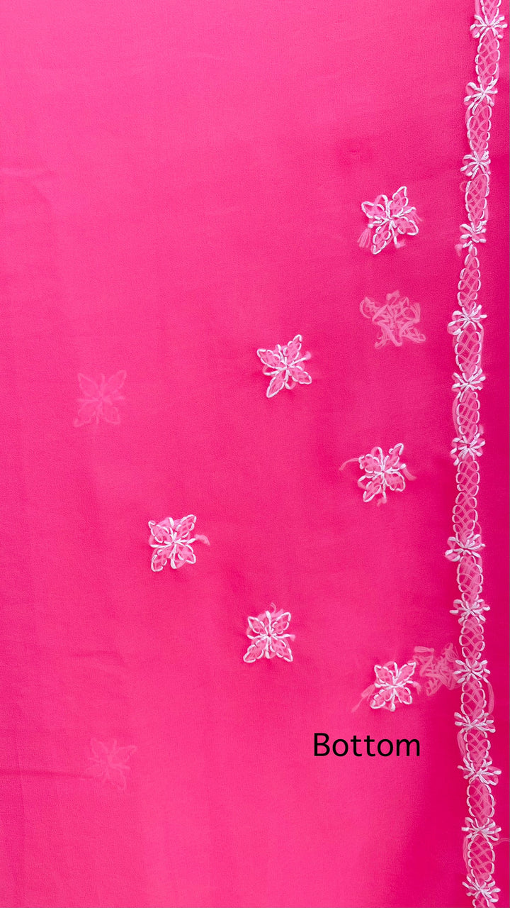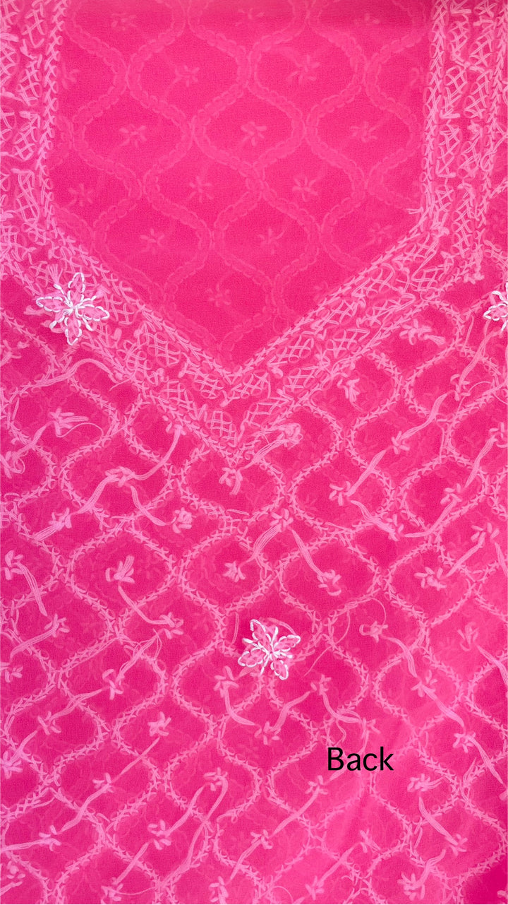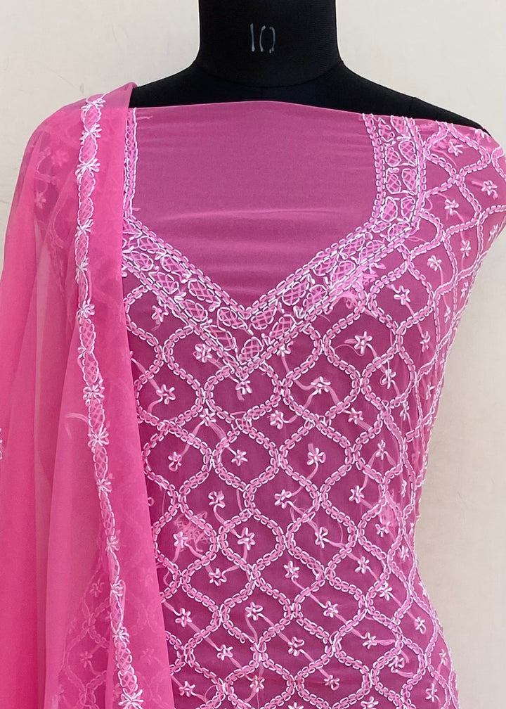 Lucknowi Chikankari Suit Length 3 Piece Pink Georgette With Embroidered Georgette Dupatta & Embroidered Same Colour Georgette Bottom