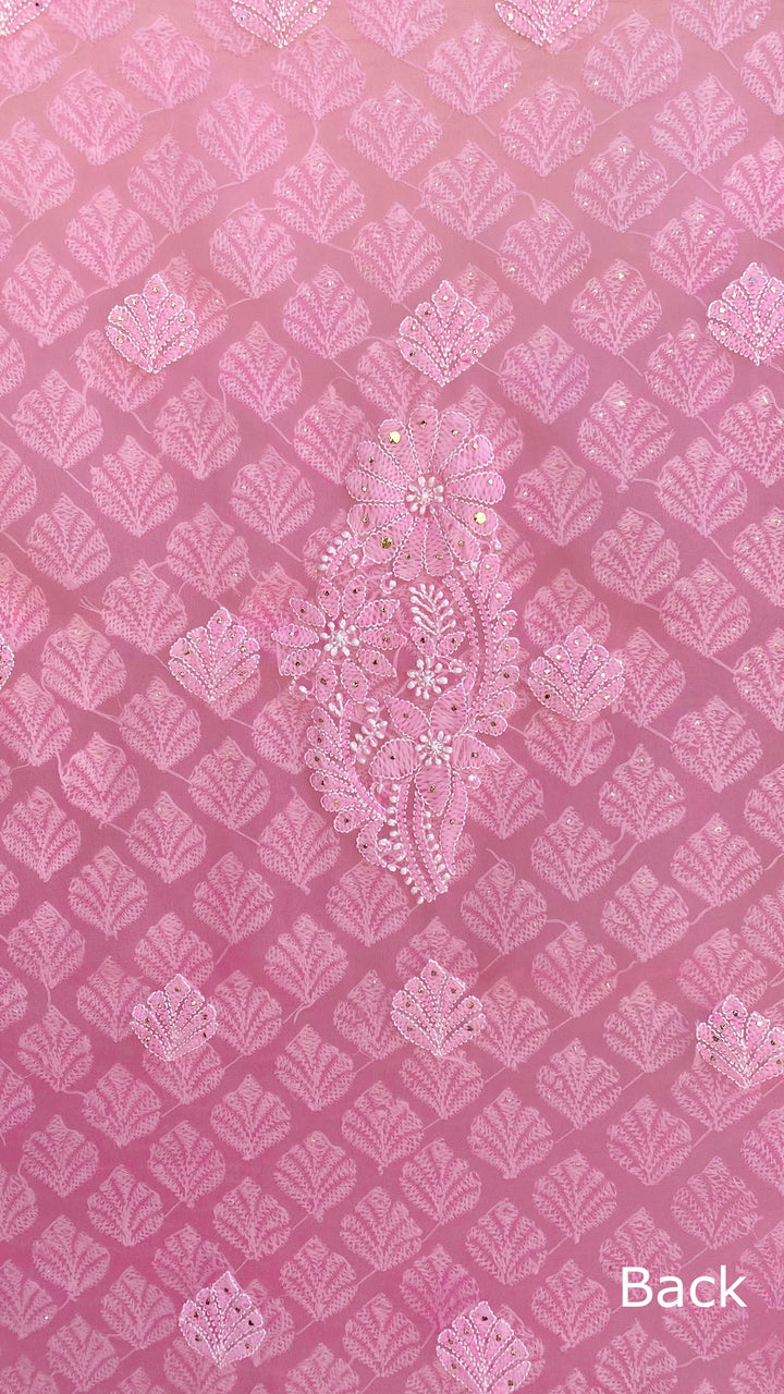 Lucknowi Chikankari Suit Length 3 Piece Pink Georgette With Mukaish Work With Embroidered Georgette Dupatta & Same Colour Embroidered Bottom