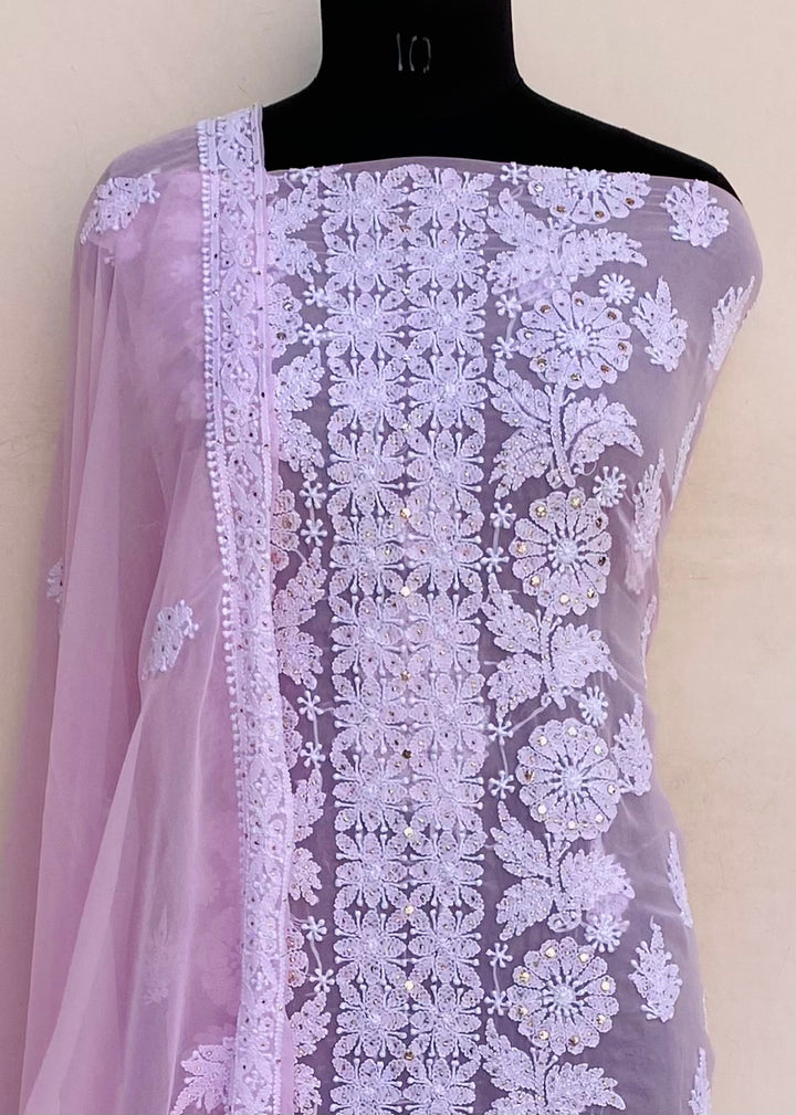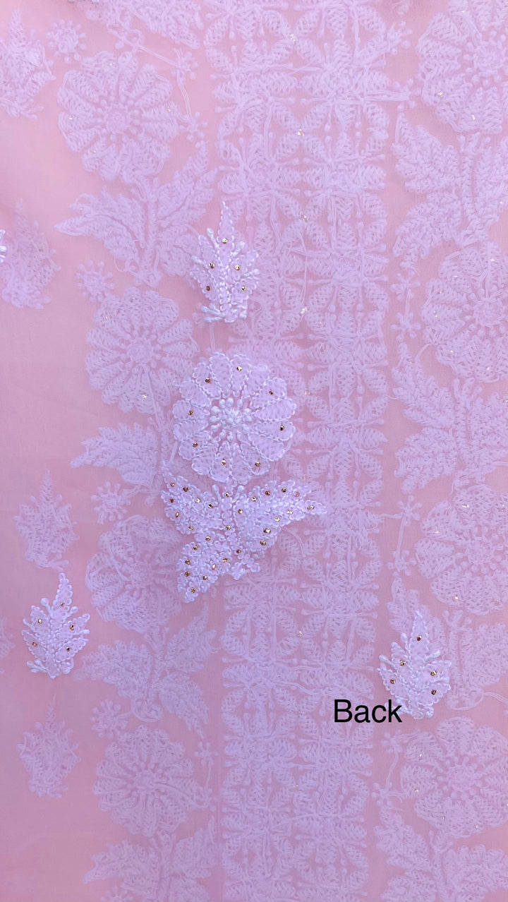 Lucknowi Chikankari Suit Length 3 Piece Pink Georgette With Mukaish Work