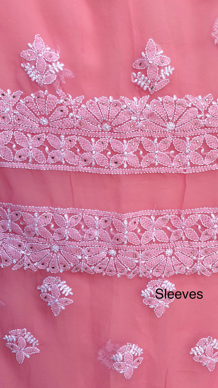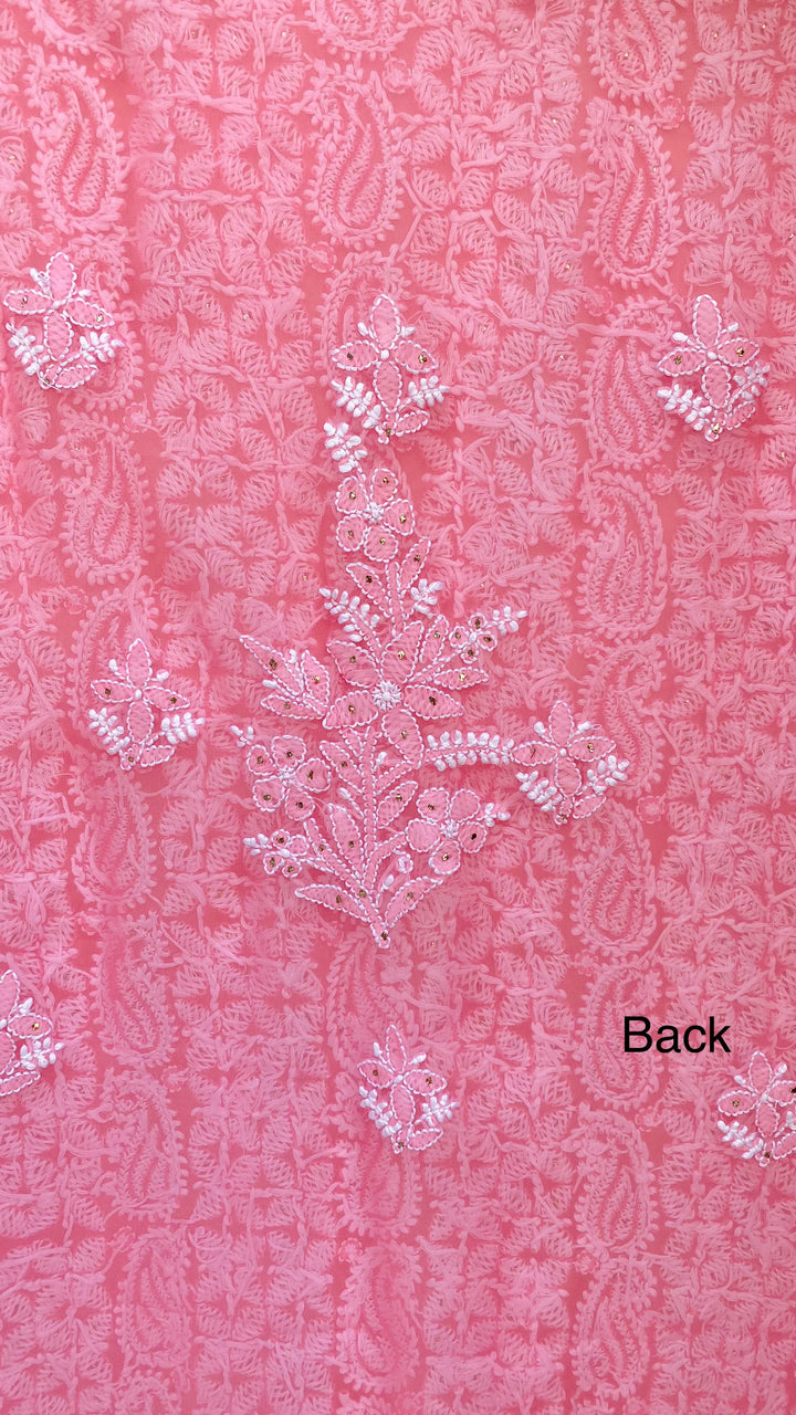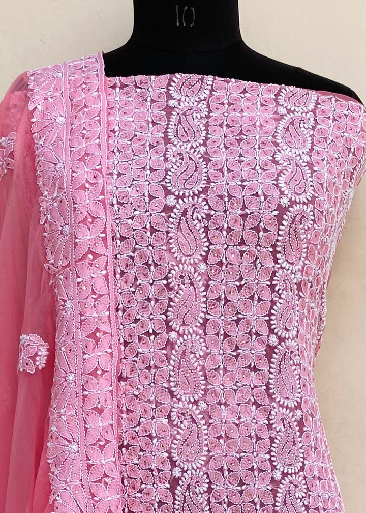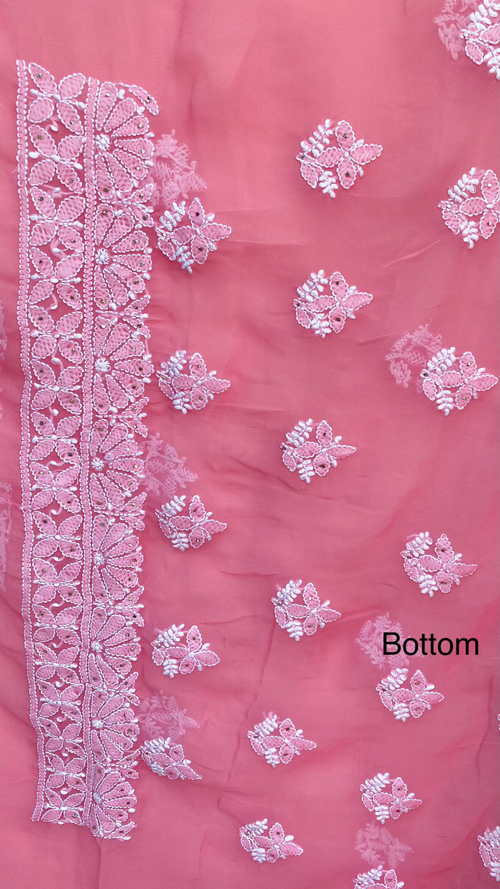 Lucknowi Chikankari Suit Length 3 Piece Pink Georgette With Sequence & Mukaish Work