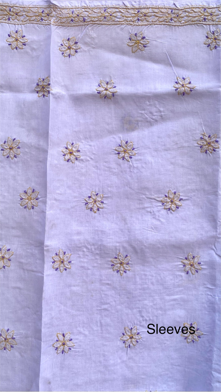 Lucknowi Chikankari Suit Length 3 Piece Purple Cotton