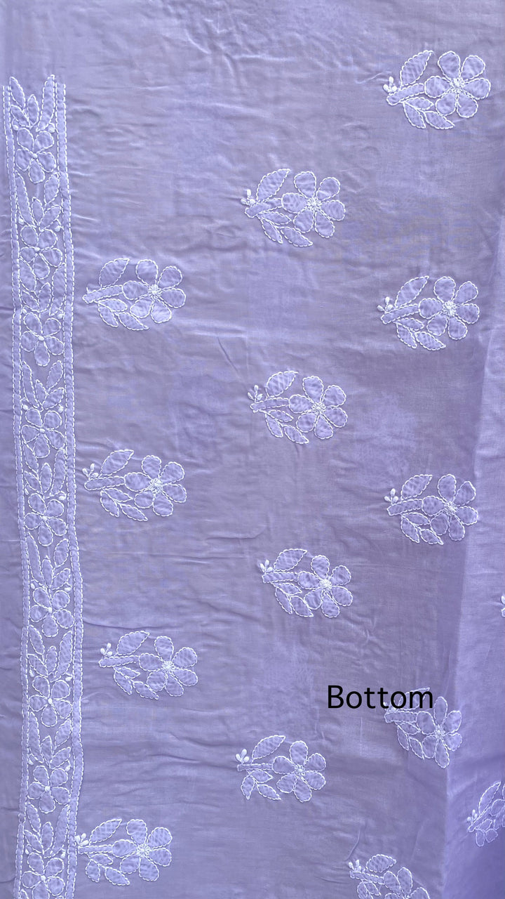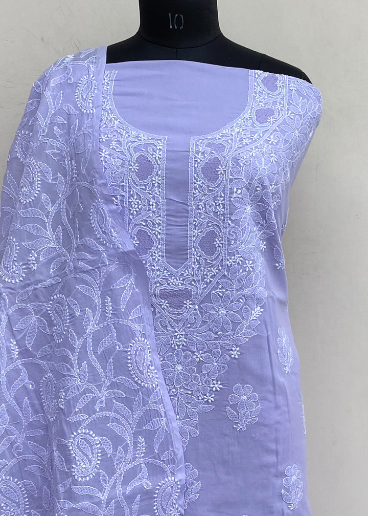 Lucknowi Chikankari Suit Length 3 Piece Purple Cotton With Jaali Work With Embroidered Cotton Dupatta & Embroidered Same Colour Cotton Bottom