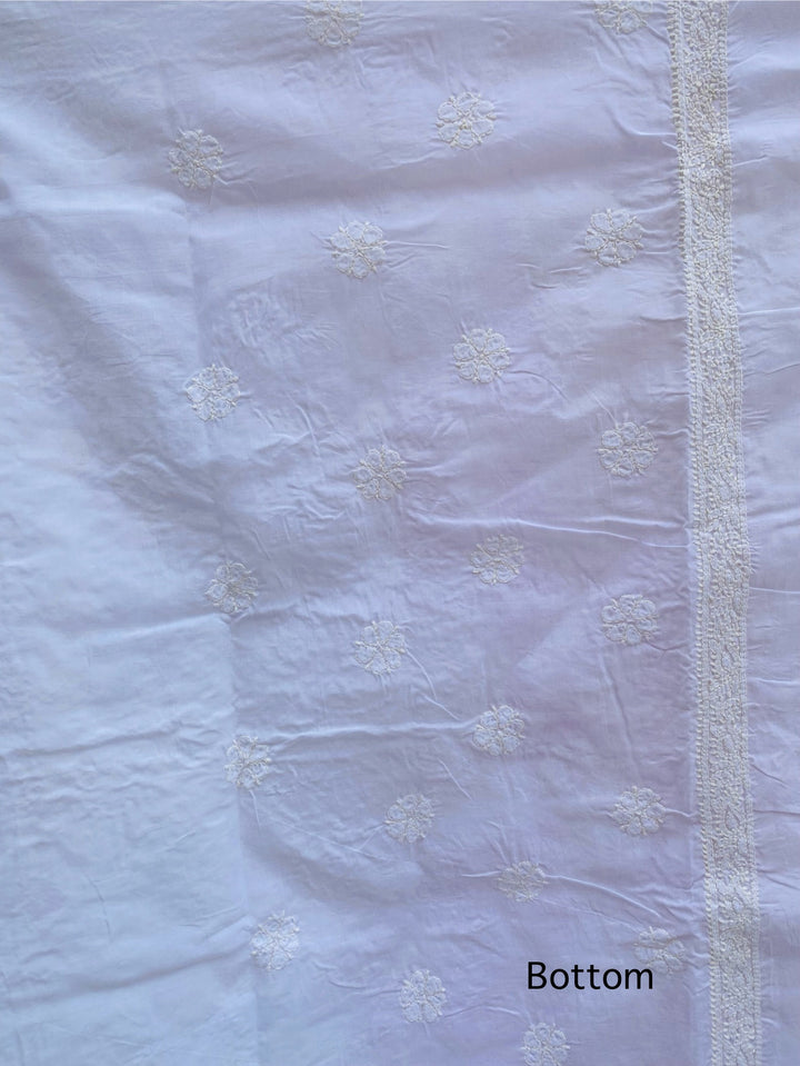 Lucknowi Chikankari Suit Length 3 Piece White Cotton With Embroidered Cotton Dupatta & Embroidered Same Colour Cotton Bottom