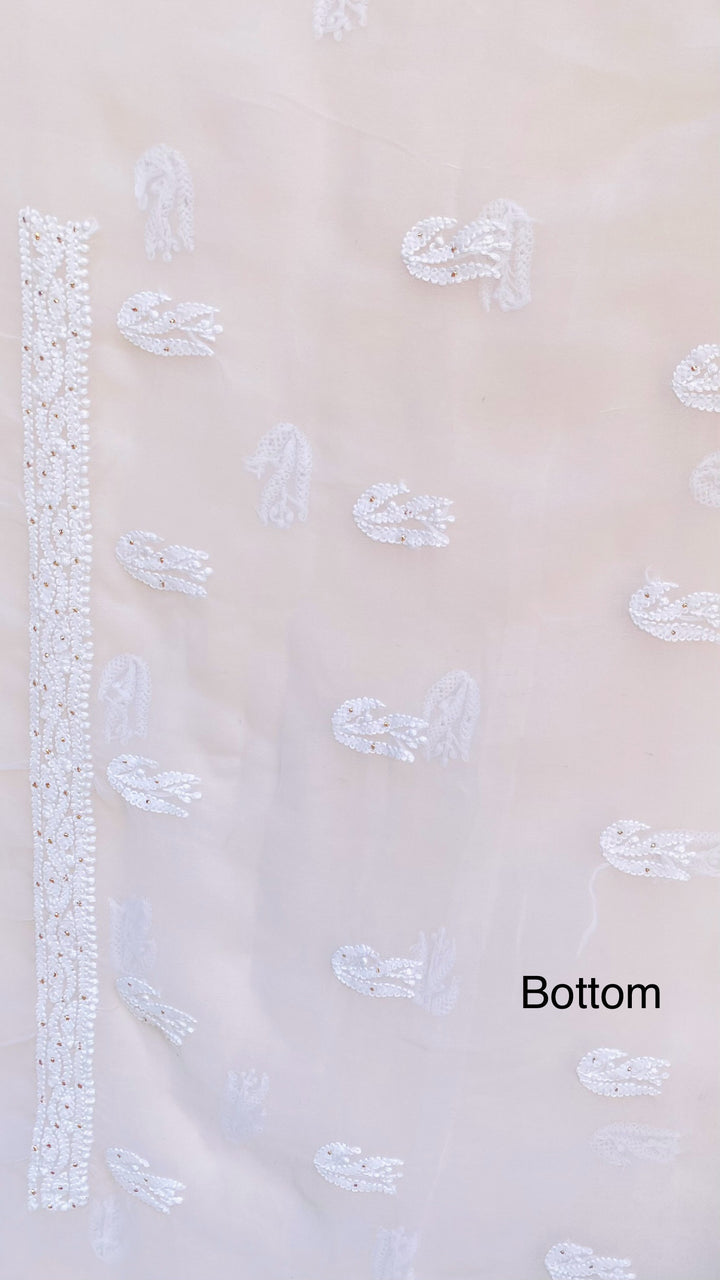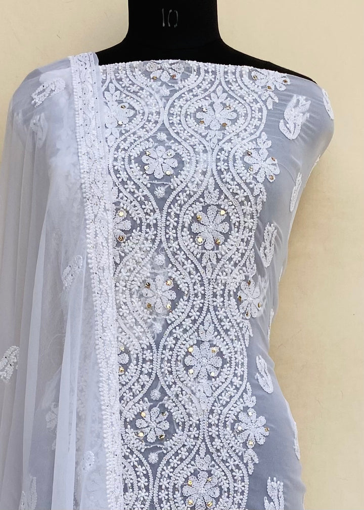 Lucknowi Chikankari Suit Length 3 Piece White Georgette With Mukaish Work