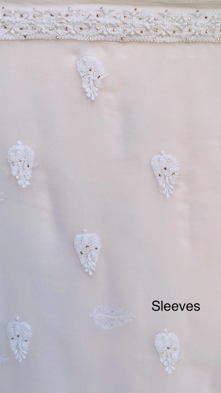 Lucknowi Chikankari Suit Length 3 Piece White Georgette With Mukaish Work