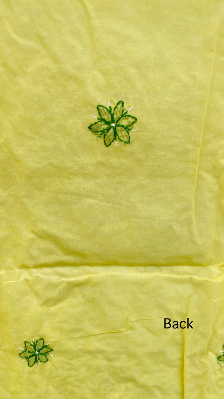 Lucknowi Chikankari Suit Length 3 Piece Yellow Cotton