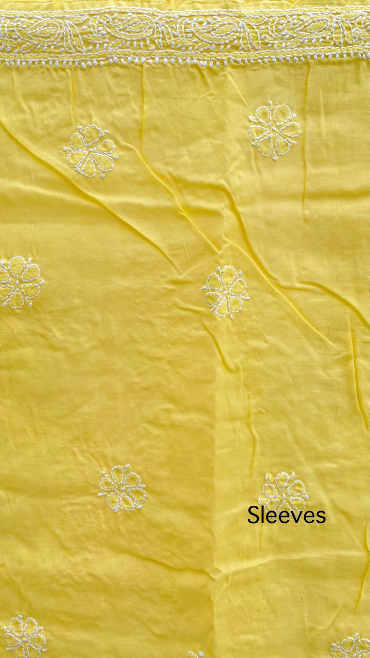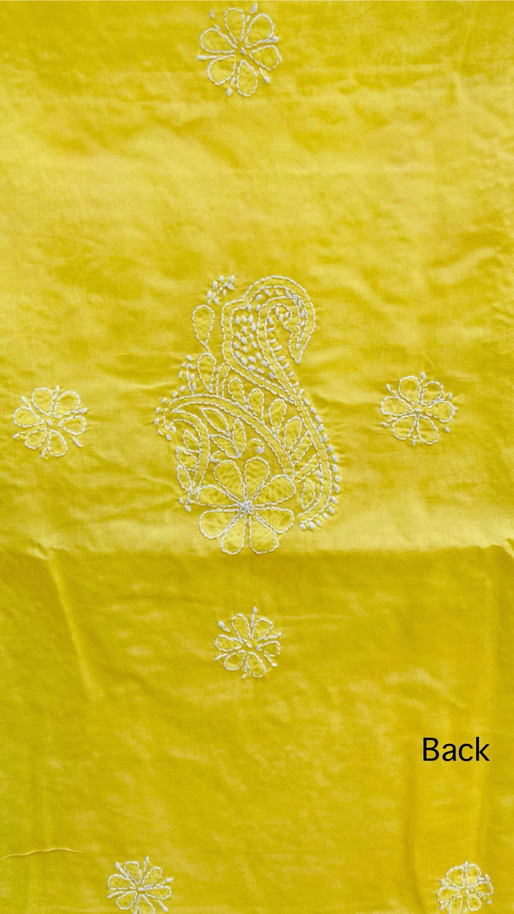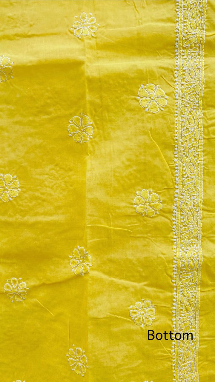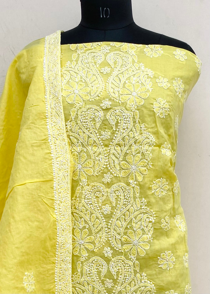 Lucknowi Chikankari Suit Length 3 Piece Yellow Cotton With Embroidered Cotton Dupatta & Embroidered Same Colour Cotton Bottom
