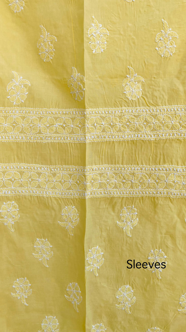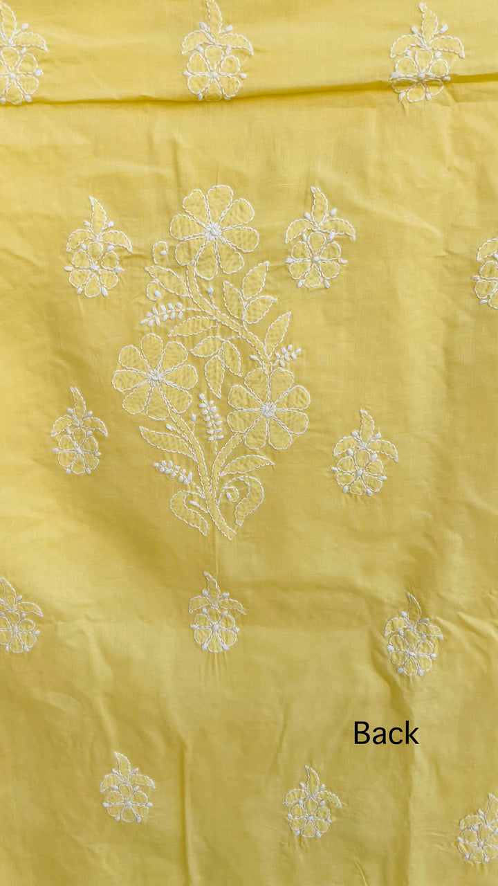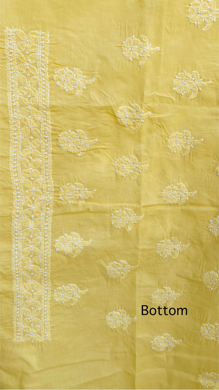 Lucknowi Chikankari Suit Length 3 Piece Yellow Cotton
