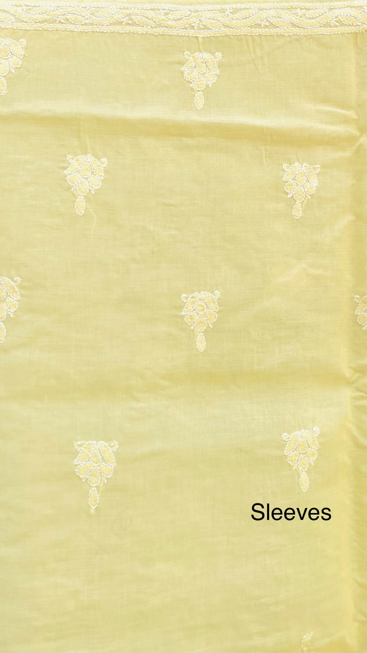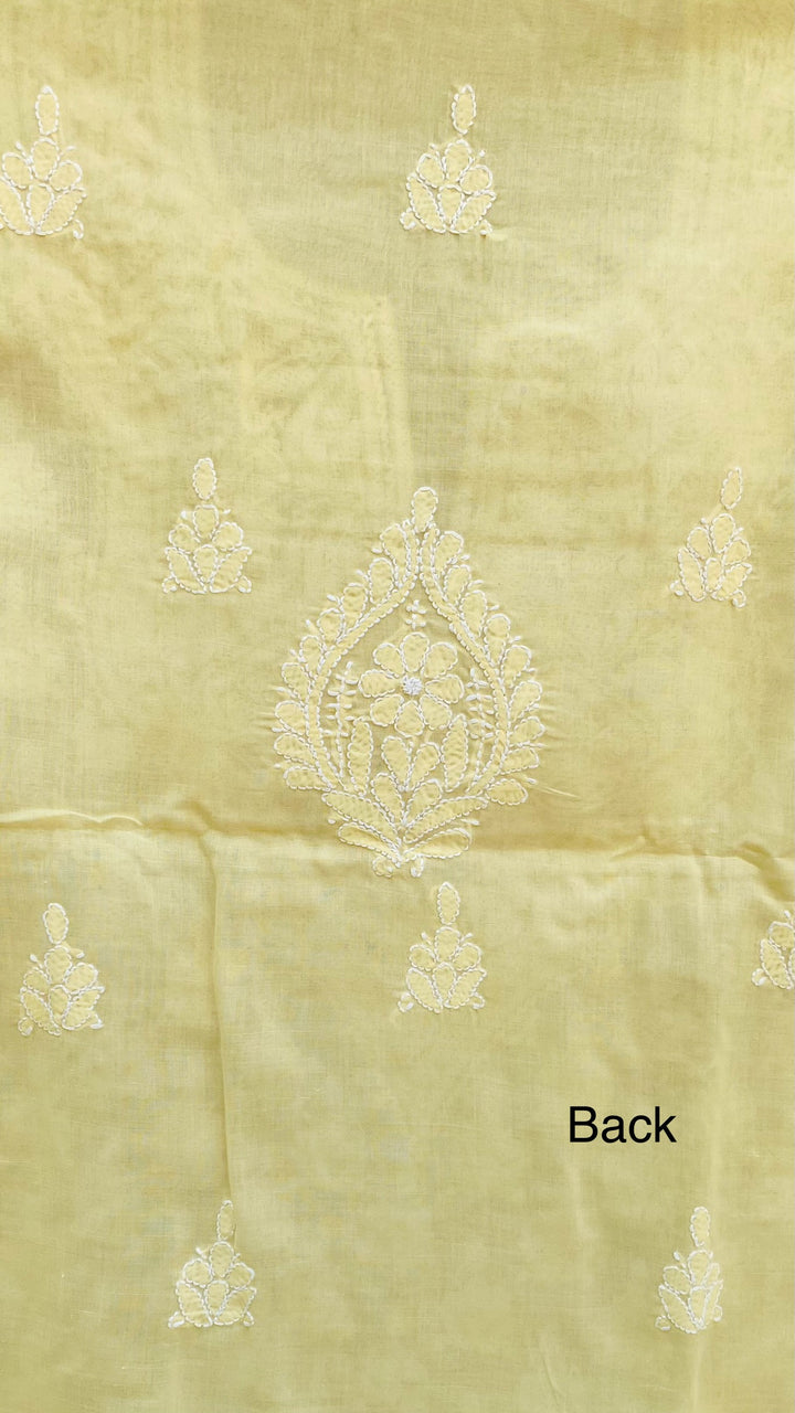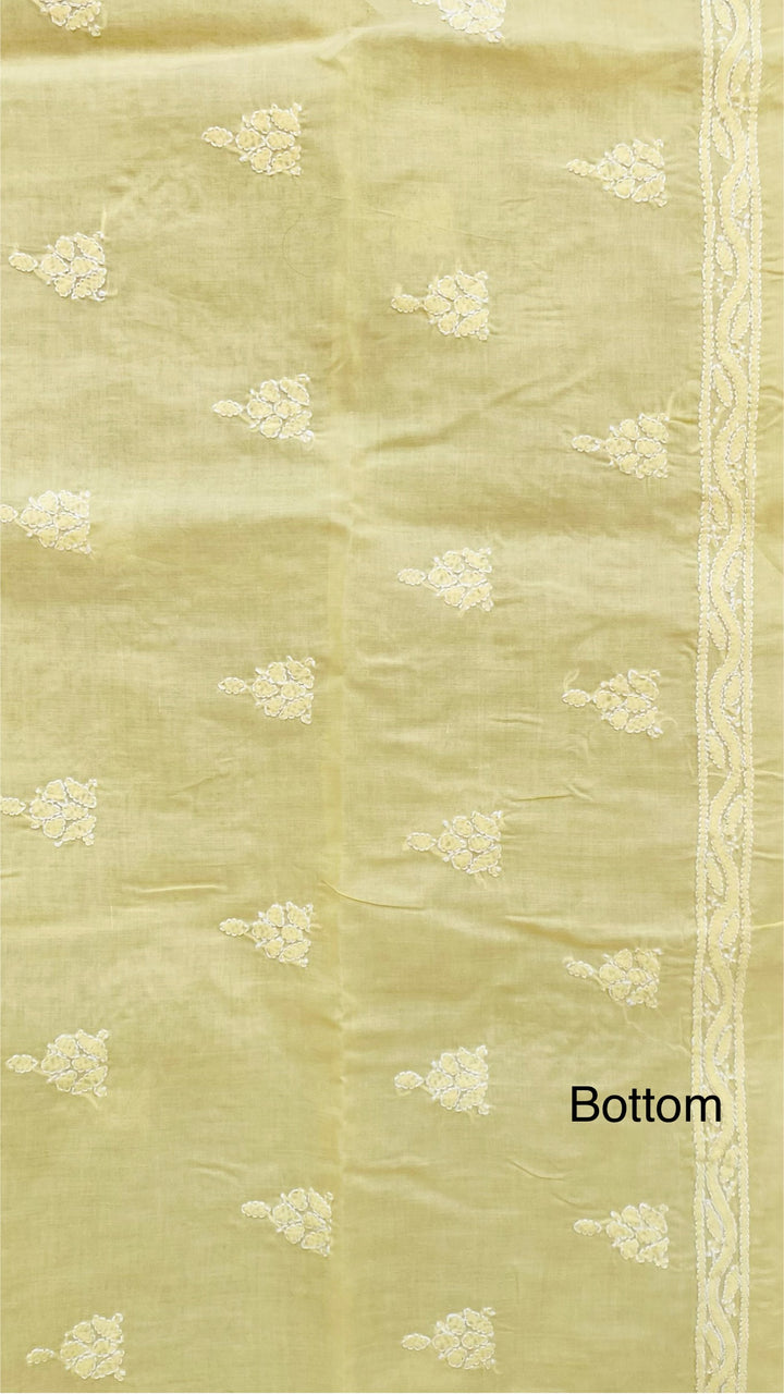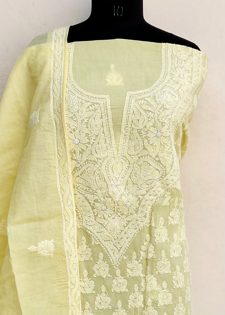 Lucknowi Chikankari Suit Length 3 Piece Yellow Cotton With Embroidered Cotton Dupatta & Embroidered Same Colour Cotton Bottom
