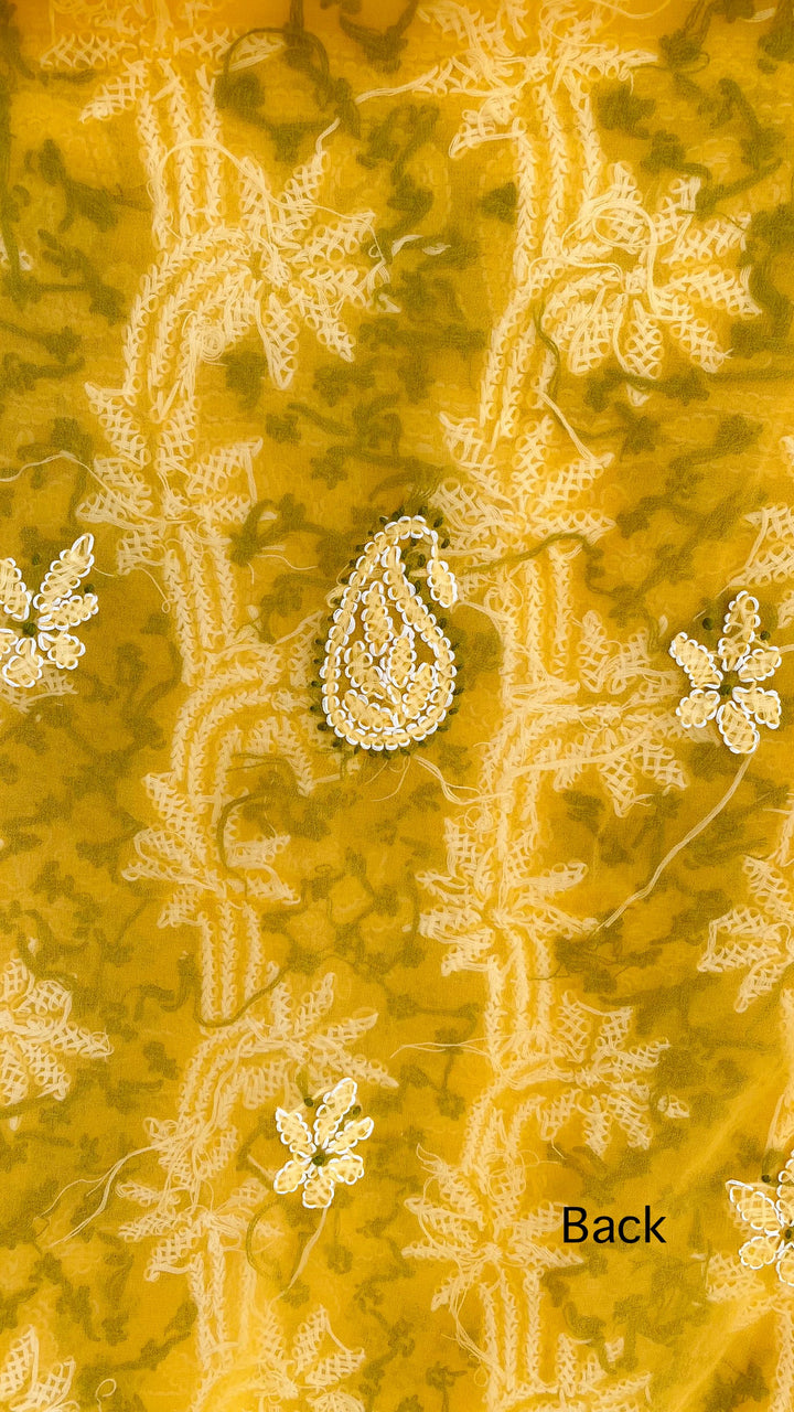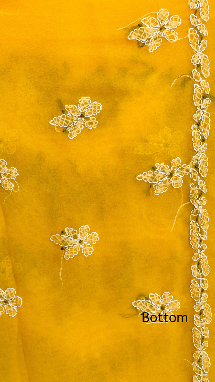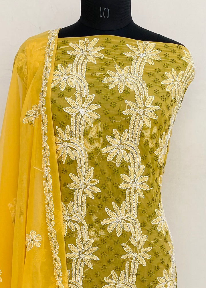 Lucknowi Chikankari Suit Length 3 Piece Yellow Georgette With Embroidered Georgette Dupatta & Embroidered Same Colour Georgette Bottom