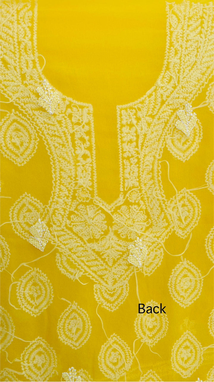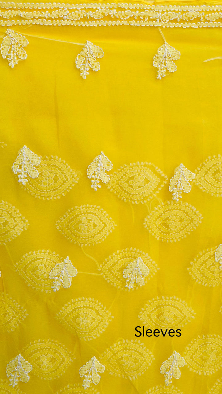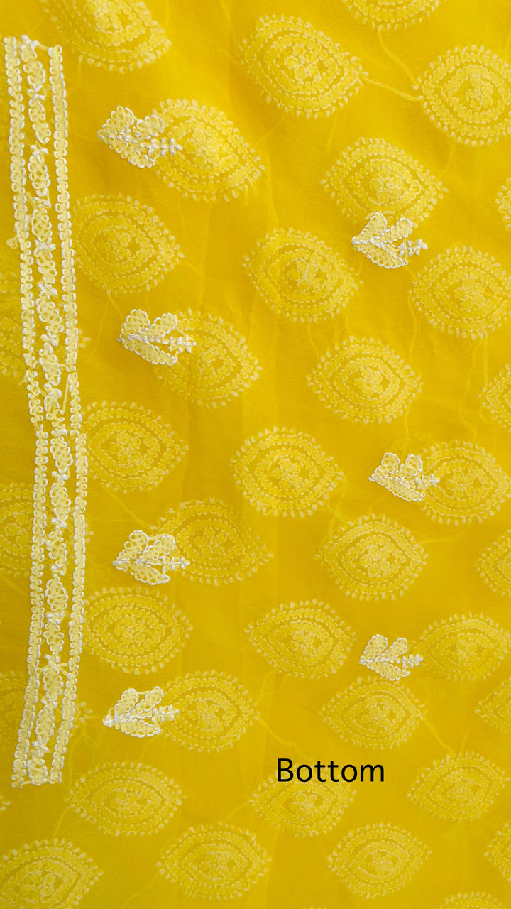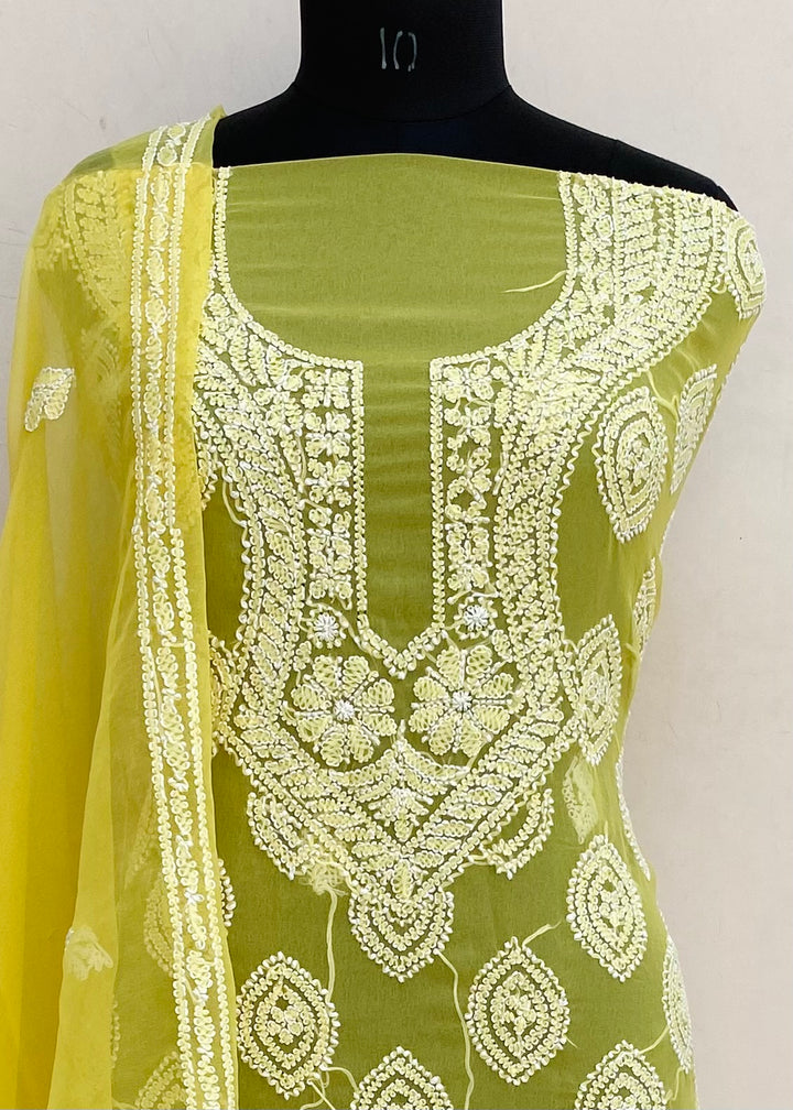 Lucknowi Chikankari Suit Length 3 Piece Yellow Georgette With Embroidered Georgette Dupatta & Embroidered Same Colour Georgette Bottom