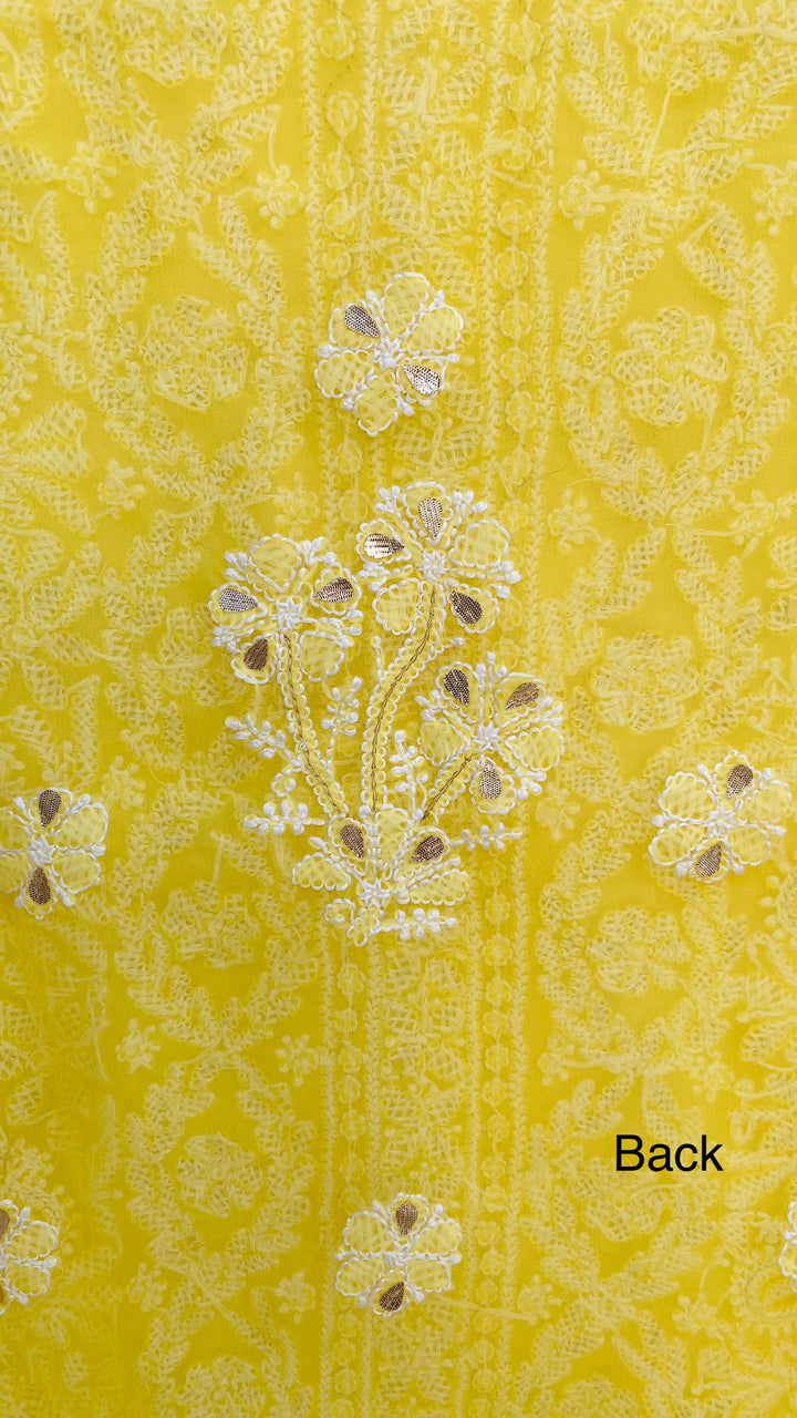 Lucknowi Chikankari Suit Length 3 Piece Yellow Georgette With Gotta Patti Work