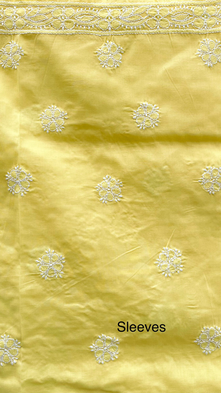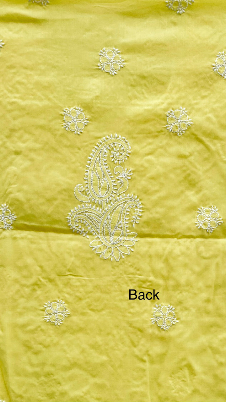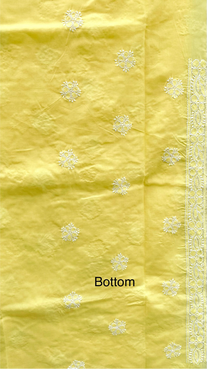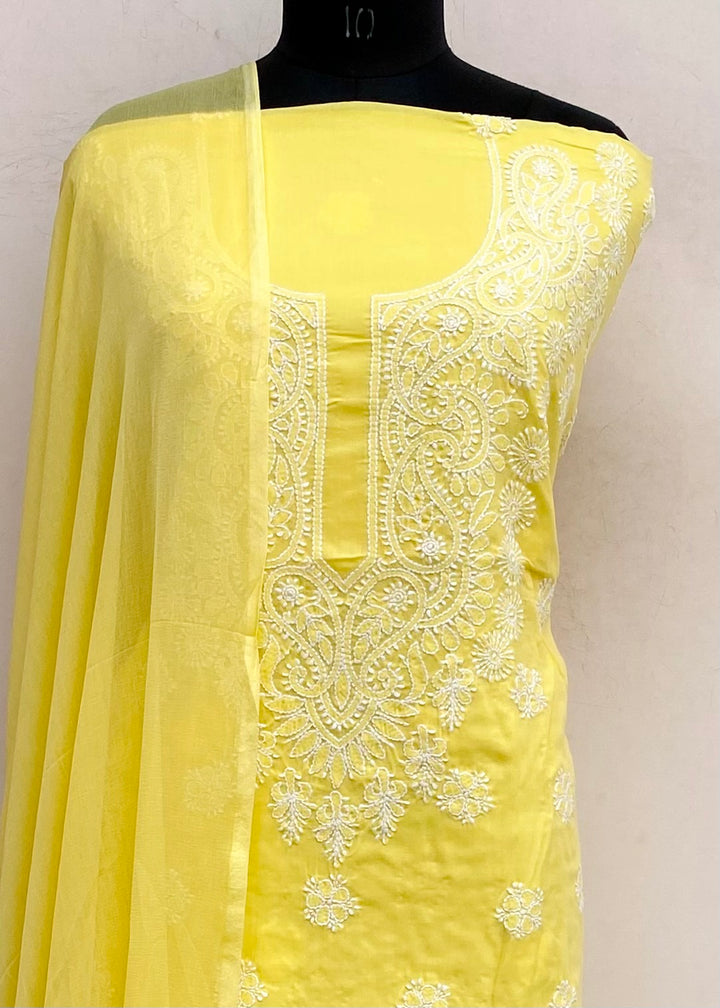 Lucknowi Chikankari Suit Length 3 Piece Yellow Mulmul Cotton
