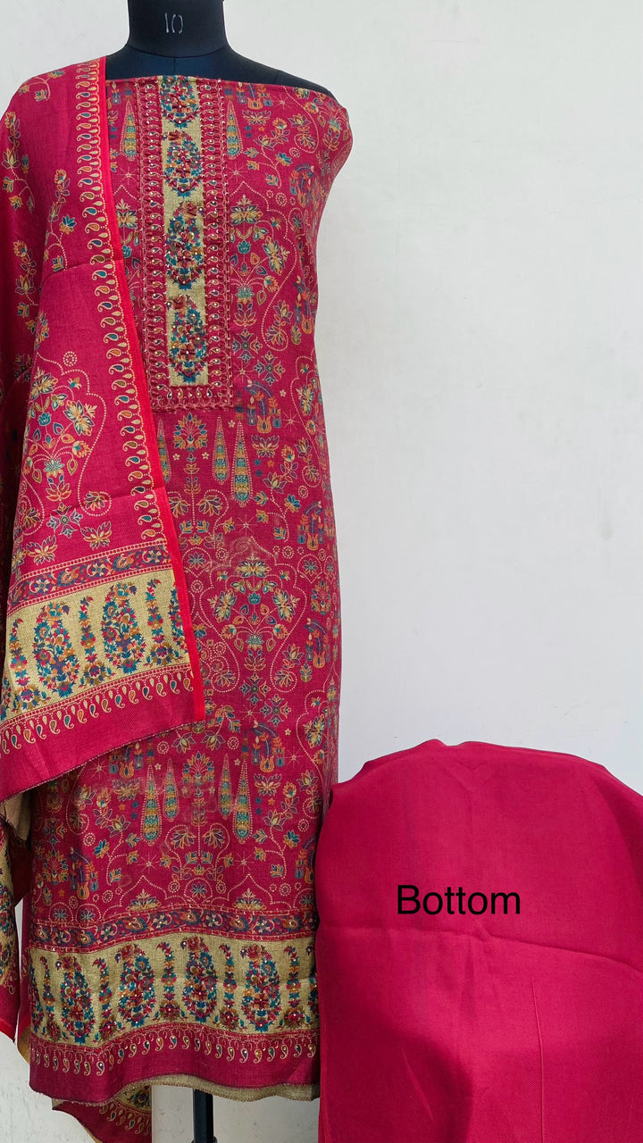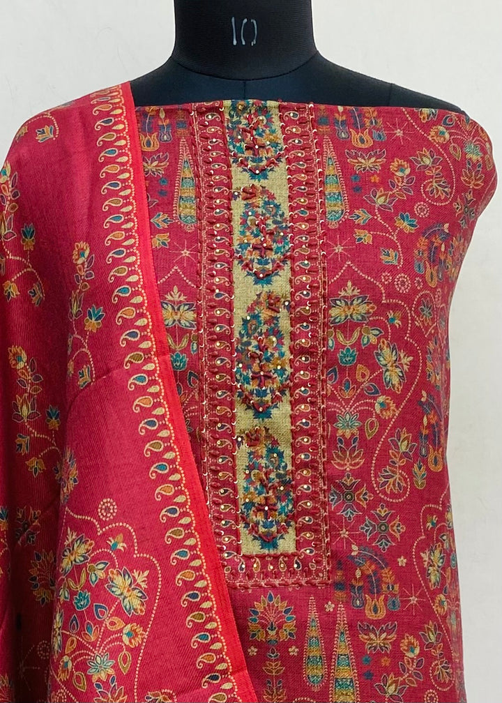 Maroon Woollen Pashmina Suit Length 3 Piece With Woollen Pashmina Shawl