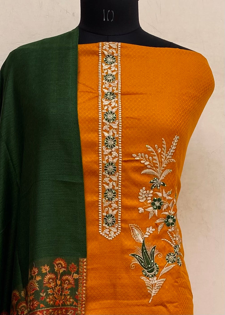 Mustard Woollen Pashmina Suit Length 3 Piece With Woollen Pashmina Shawl