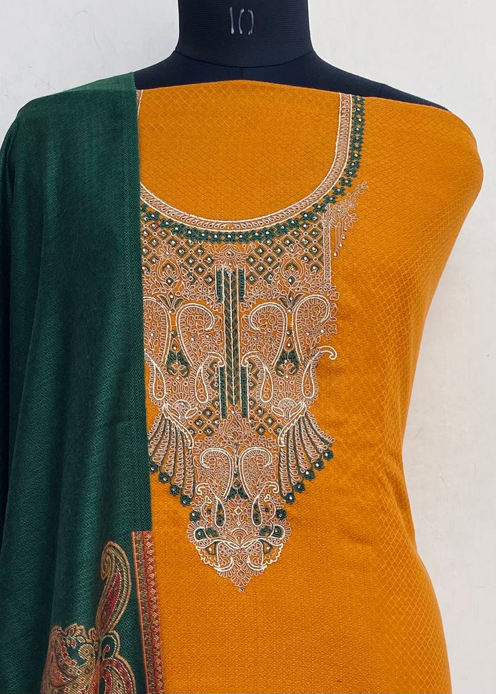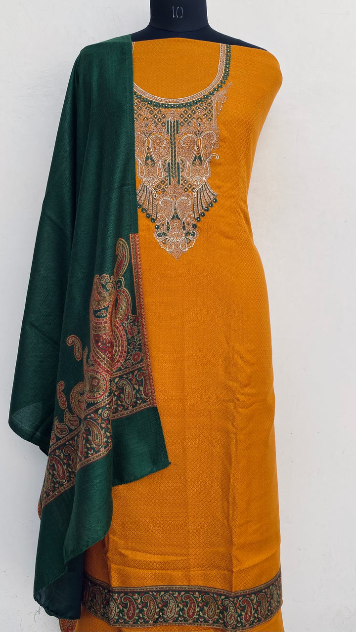 Mustard Woollen Pashmina Suit Length 3 Piece With Woollen Pashmina Shawl
