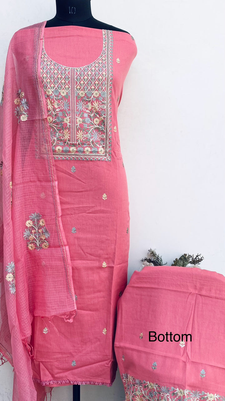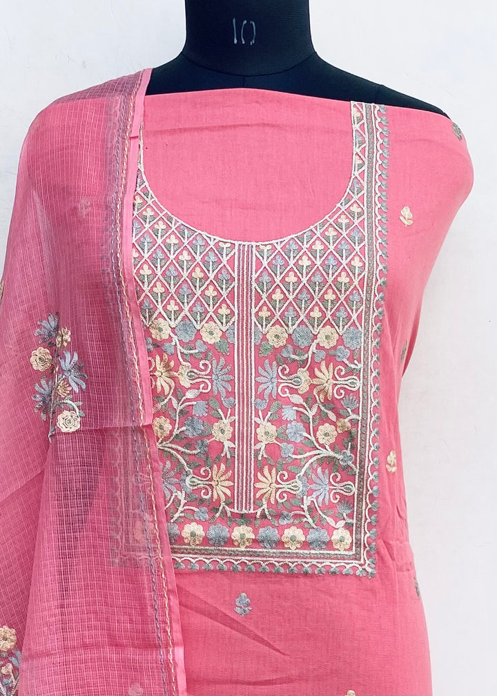 Pink Woollen Pashmina Suit Length 3 Piece With Embroidered Kota Dupatta