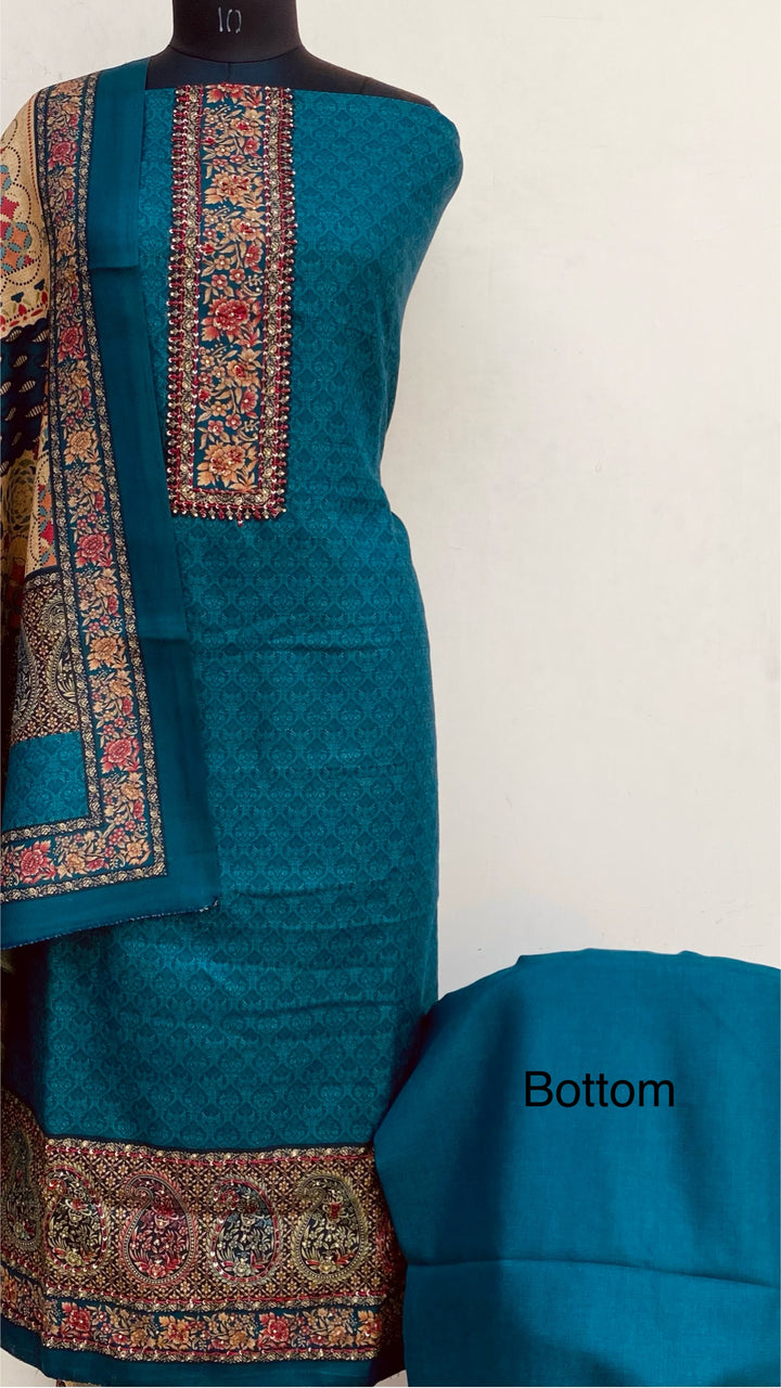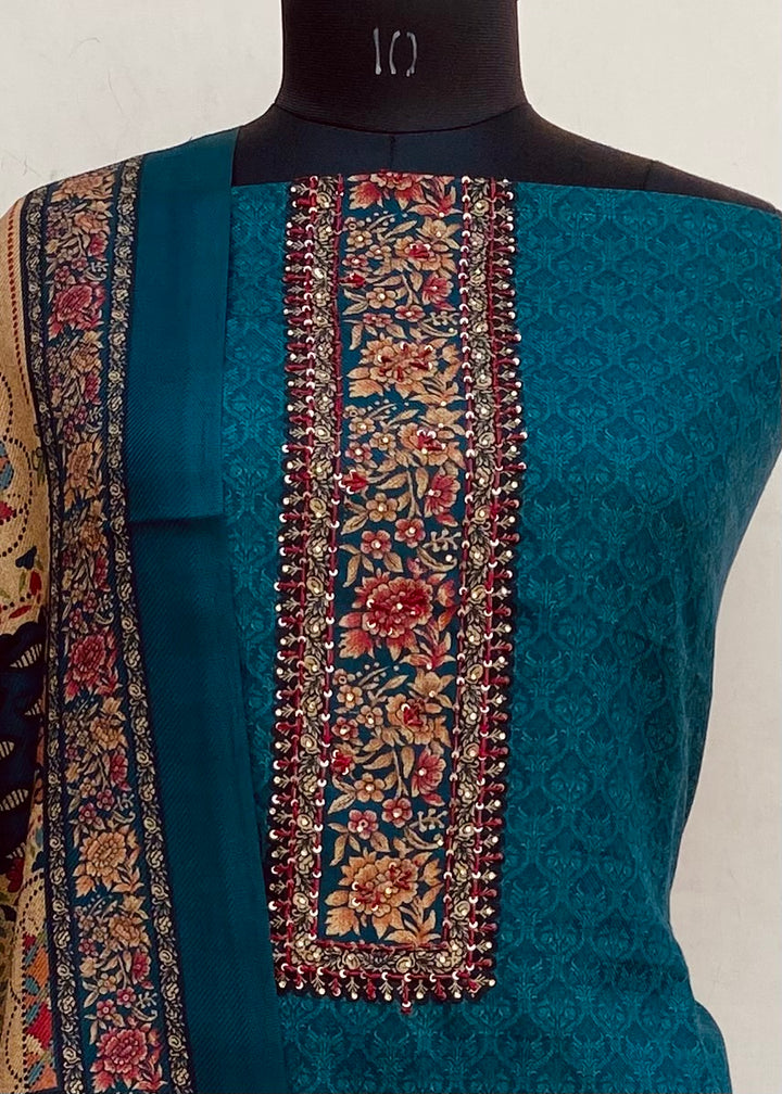 Sea Green Woollen Pashmina Suit Length 3 Piece With Woollen Pashmina Shawl