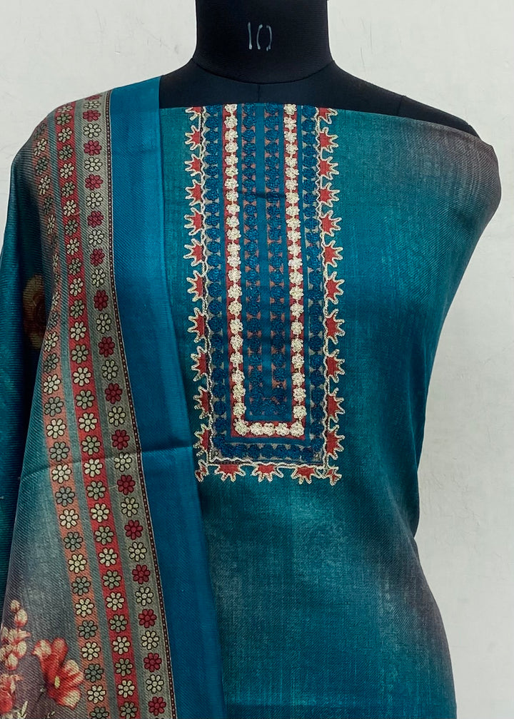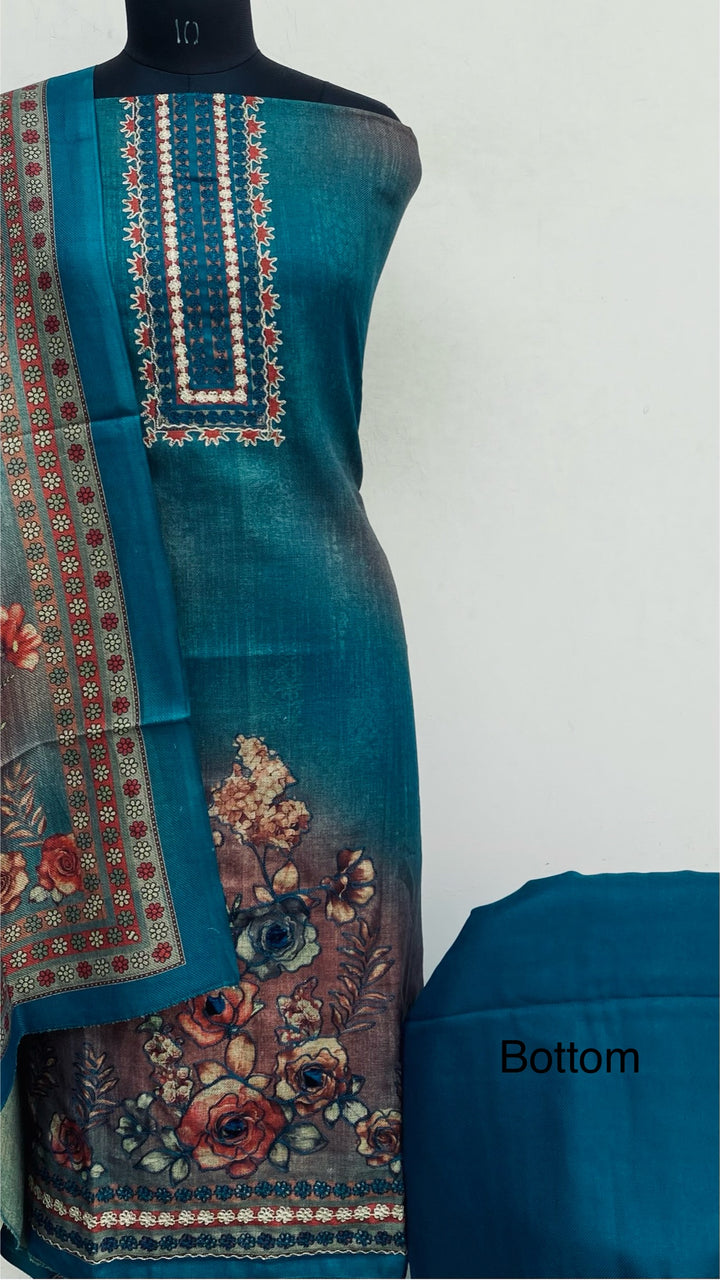 Sea Green Woollen Pashmina Suit Length 3 Piece With Woollen Pashmina Shawl
